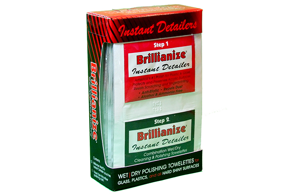 Brillianize含有聚硅氧烷成分,擦拭后表面形成一涂层,其防静电效果可持续一周之久。其会慢慢消失,重新擦拭即可。波音和Aviall推荐Brillianize,史密森尼博物馆(Smithsonian)和古根海姆博物馆都在使用Brillianize。